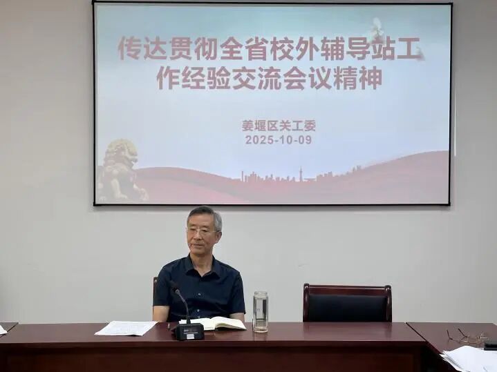10月9日上午,姜堰区关工委常务副主任陈中华主持召开主任办公会议,紧扣全省校外辅导站工作经验交流会议核心要义,锚定“强内涵、提质量、上水平”目标,全面谋划部署,为青少年健康成长筑牢坚实阵地。区关工委副主任薛春凤传达学习学省校外辅导站工作经验交流会议精神。