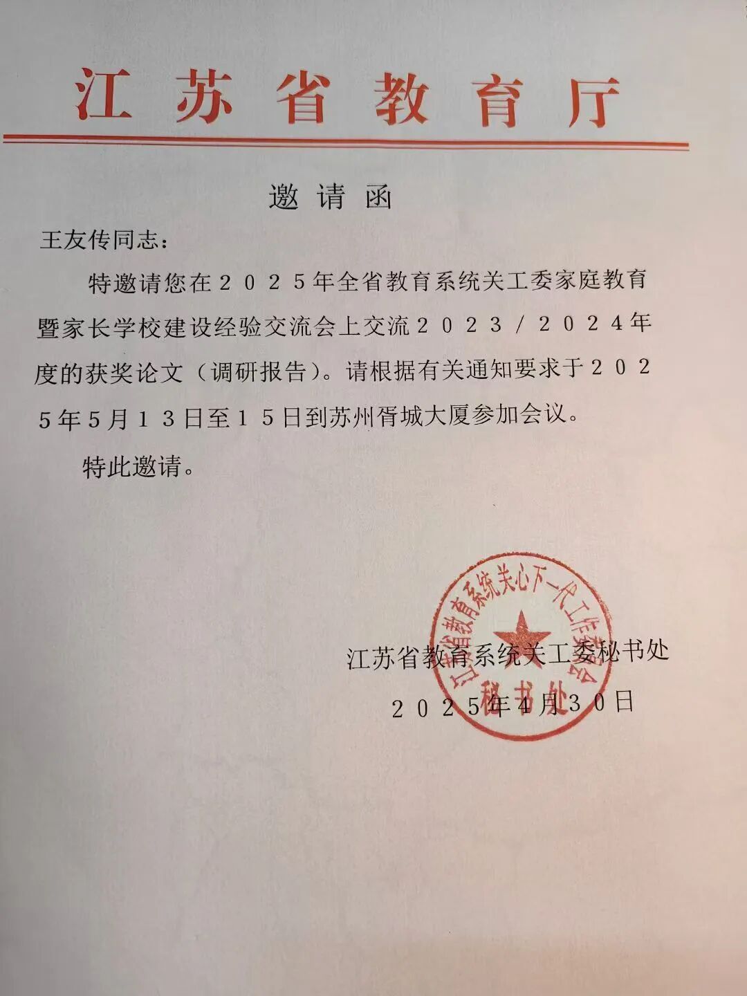 5月13日至15日,全省教育系统关工委家庭教育暨家长学校建设经验交流会在苏州召开,省教育厅党组成员、副厅长、一级巡视员顾月华出席会议并讲话,省教育系统关工委主任徐子敏主持会议。 会议聚焦立德树人根本任务,围绕新时期家庭教育的新形势新要求新任务,深入交流各地教育系统关工委家庭教育与家长学校的经验做法和特色亮点,研究探讨进一步发挥教育系统关工委在家校社协同育人中的作用,找准工作的结合点和发力点,助推家校社协同育人“教联体”建设,促进形成良好的教育生态和育人环境。 会议采取经验交流、工作研讨、实地考察等方式进行。市教育系统关工委副秘书长王友传作为2023——2024年度“全省家庭教育暨家长学校建设优秀论文”一等奖和最佳项目奖获得者在会上宣读调研报告《泰州市中小学家校协同育人现状调查与思考》并做经验介绍。泰州医药城小学作为泰州市唯一的基层优秀家长学校代表应邀作《创家长大学,为家长赋能》介绍,受到与会人员的高度评价。 据悉,本次“全省教育系统关工委家庭教育暨家长学校经验交流会”,仅邀请了11名获奖者代表和13所“江苏省优秀家长学校”的负责人参会并做经验交流。 |